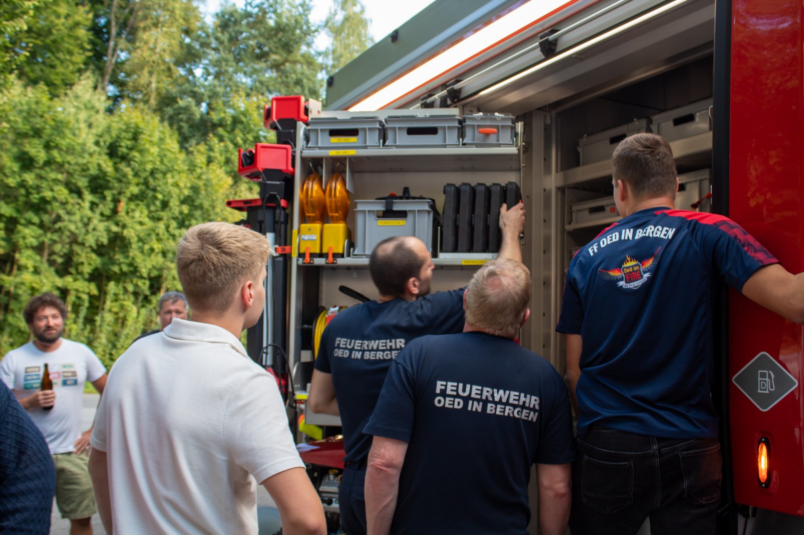 Zur Übergabe im Feuerwehrhaus Oed in Bergen waren neben den Kameradinnen und Kameraden auch Vertreter der Gemeinde, darunter Bürgermeister Wolfram Moshammer sowie Mitglieder des Gemeinderates, anwesend.